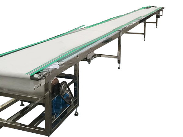2、機(jī)架部分經(jīng)焊接而成,輸送帶由隨動(dòng)輥、支撐板支托,使輸送帶傳送平穩(wěn)。輸送帶傳送平穩(wěn),能有效地提高饅干包裝效率。
